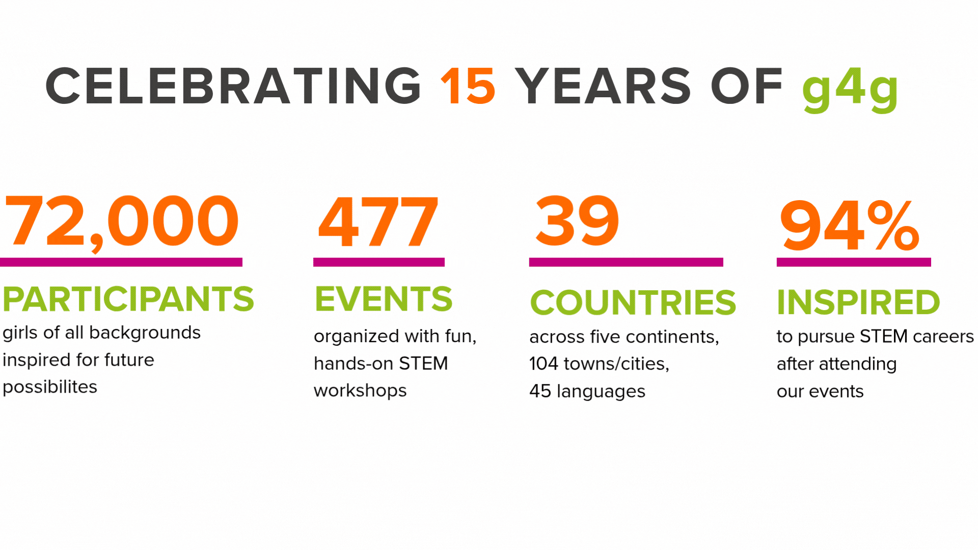 g4g inspires girls to pursue their future in STEM (Science, Technology, Engineering and Mathematics) by introducing them to the world of science in fun and exciting ways.